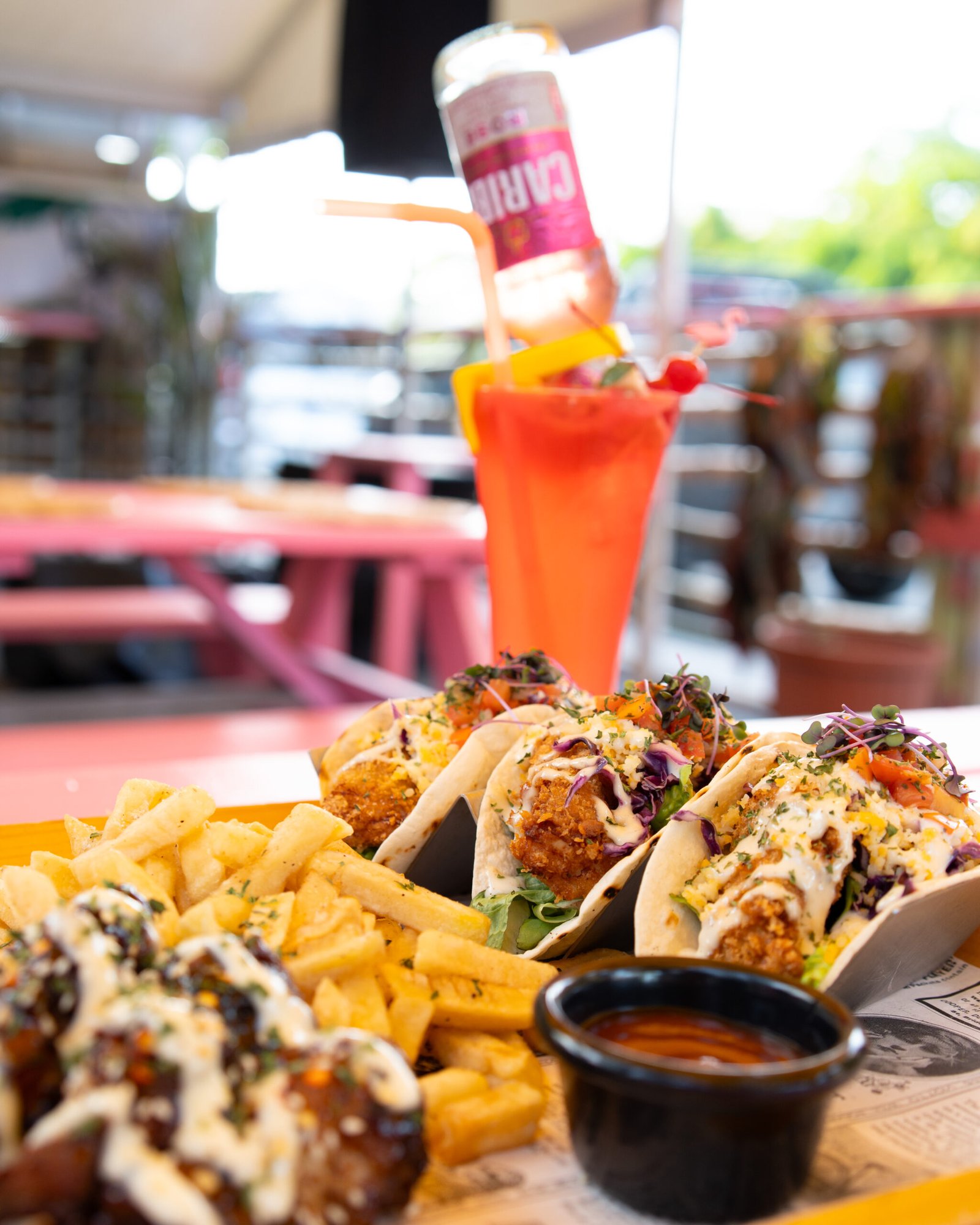 3- Flavourful Tacos, 4-Juicy BBQ Wings, Crispy seasoned fries – perfect for sharing or indulging solo!
