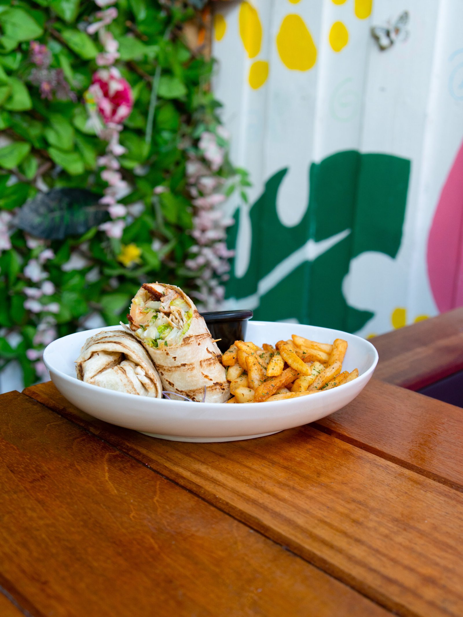 Choice of Grilled Chicken ($38.00), Fish ($42.00), or Spiced Shrimp ($48.00) with crisp lettuce, fresh salsa, and seasoned corn, drizzled with our creamy house garlic sauce and wrapped in a soft tortilla. Served with your choice of fries or salad.